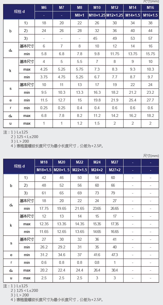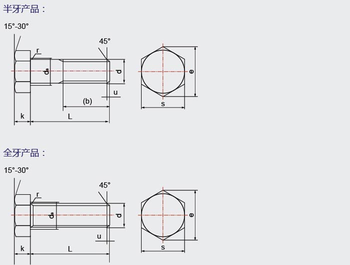 » 六角無墊圈面日制螺栓(JIS B1180-1974)