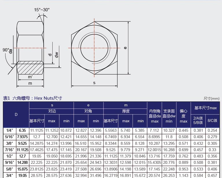 » 六角螺母(美制ASME/ANSIB18.2.2)